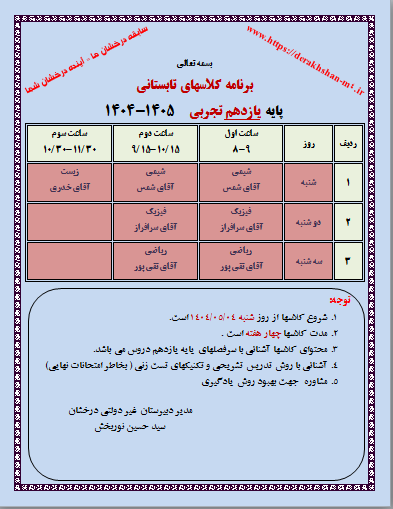 برنامه کلاسهای رفع اشکال امتحانات خرداد1404