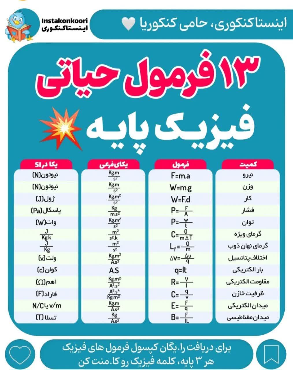 13 فرمول حیاتی فیزیک پایه